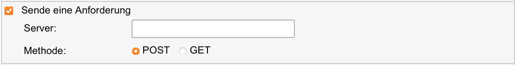 Mit dieser Aktion können Sie Warnungen über die ausgelösten Benachrichtigungen an Systeme von Drittanbietern senden. Wenn Sie diese Aktion auswählen, geben Sie die Serveradresse sowie die Methode der HTTP-Anforderung (POST oder GET) an.