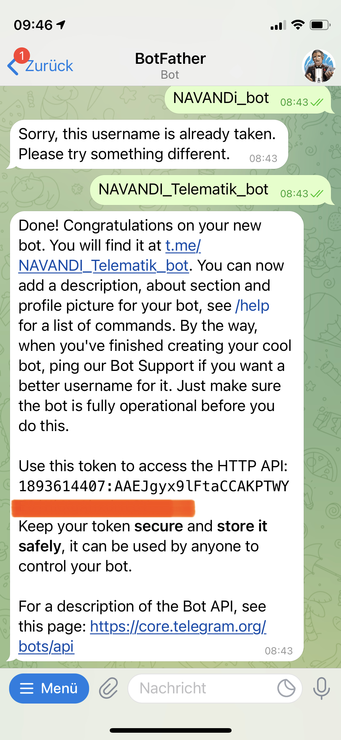 durch das Bot-Token. - Drücken Sie die Eingabetaste.