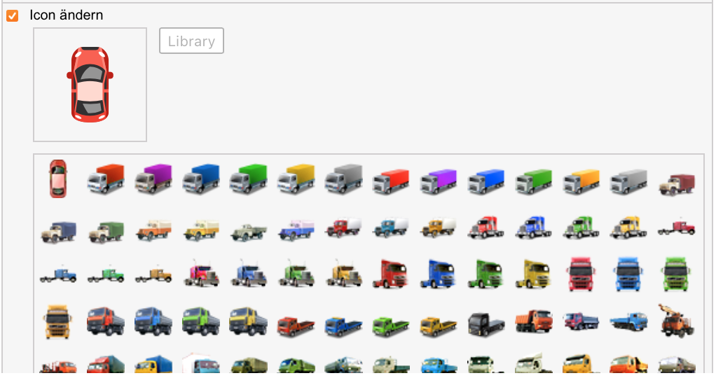 Diese Aktion wird verwendet, um das Symbol des aktuellen Objektes durch das angegebene zu ersetzen, wenn die Benachrichtigung ausgelöst wird. Klicken Sie auf die Schaltfläche Bibliothek, um das Fenster mit den verfügbaren Symbolen zu öffnen.