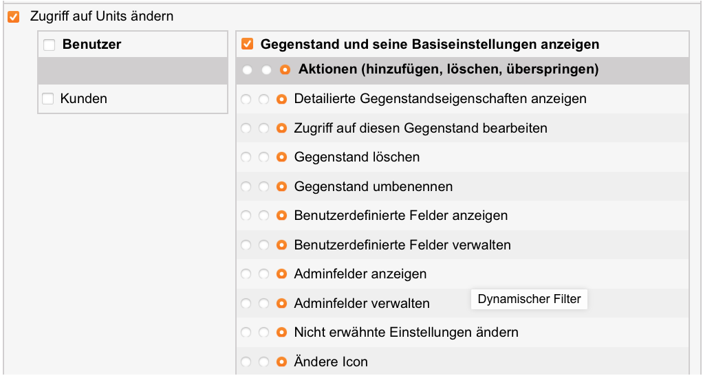 Um mit dieser Aktion zu arbeiten, ist das Zugriffsrecht Zugriff auf diesen Gegenstand bearbeiten erforderlich.