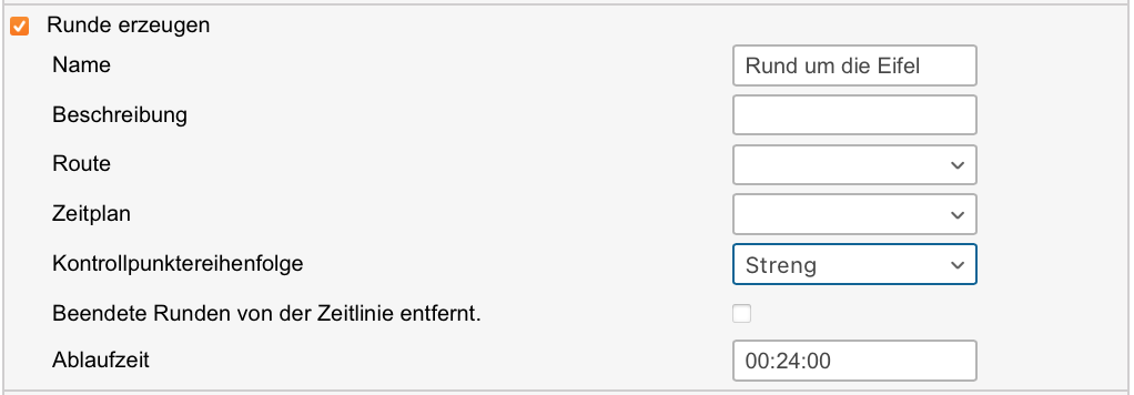 Nachdem die Benachrichtigung ausgelöst wurde, kann eine neue Runde für ein Objekt erstellt werden. Wenn beispielsweise eine Runde beendet ist, kann eine neue Runde zugewiesen werden, oder wenn ein Objekt den Geouzaun verlässt (z.B. eine Garage), wird automatisch eine neue Runde erstellt. Mehr über die Parameter, die für Runden konfiguriert werden können, werden im Abschnitt Routen beschrieben.