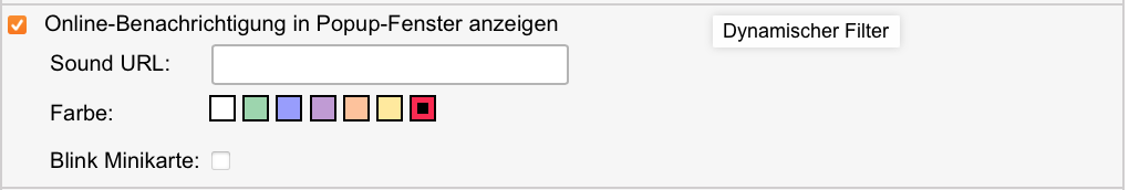 Diese Aktion wird verwendet, um Online-Benachrichtigungen einzurichten, die in einem Popup-Fenster angezeigt werden. Eine solche Benachrichtigung kann lautlos sein oder mit einem benutzerdefinierten Ton angezeigt werden. Wenn keine URL für den Sound angegeben wird, wird der Standardton verwendet. Um einen benutzerdefinierten Ton zu verwenden, geben Sie die URL des Sounds ein. Die empfohlene Dateigröße beträgt bis zu 0,5 MB.