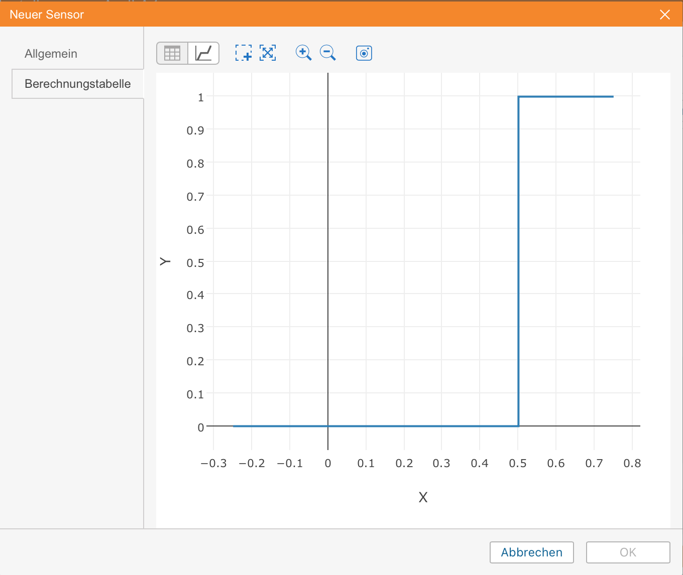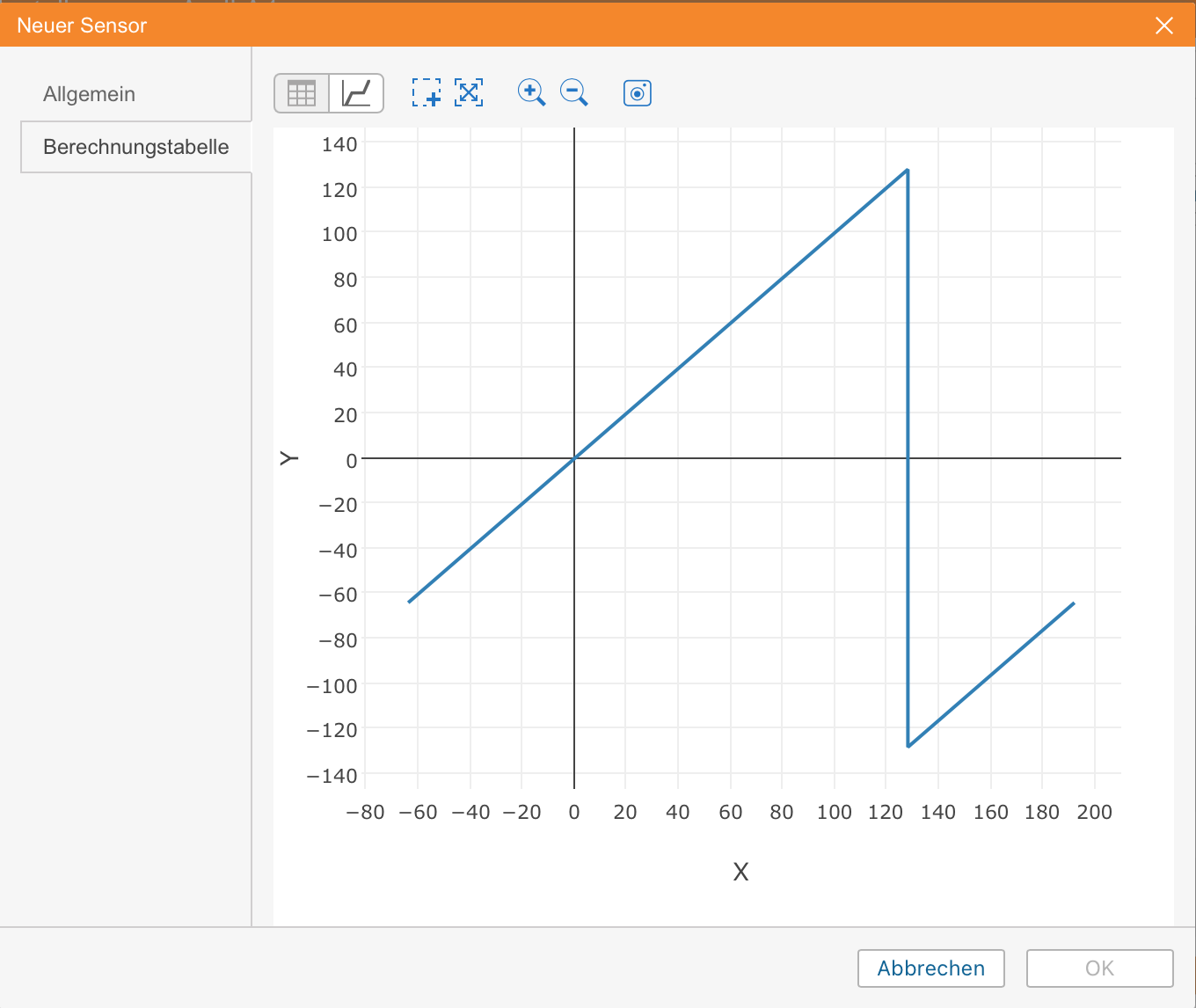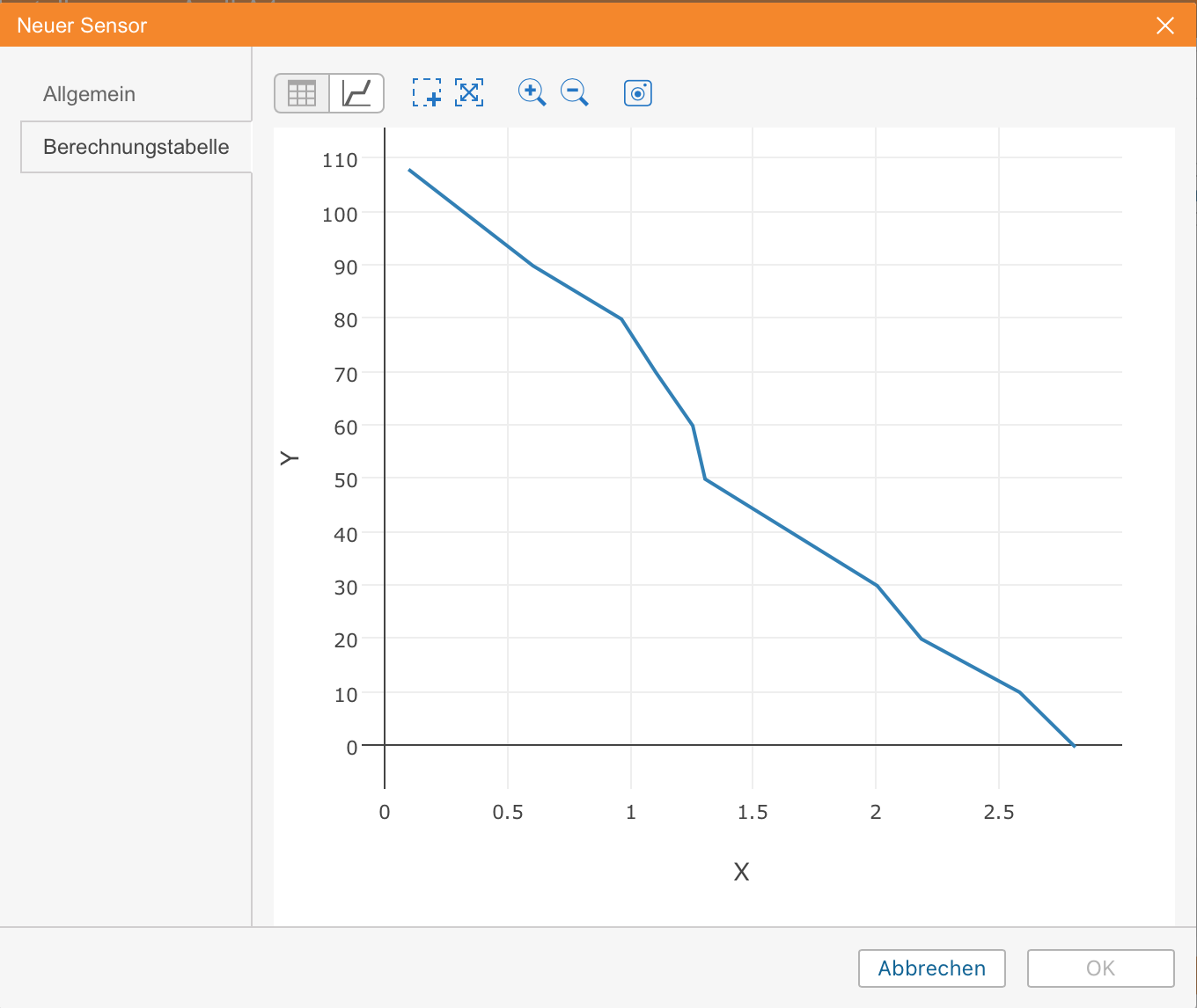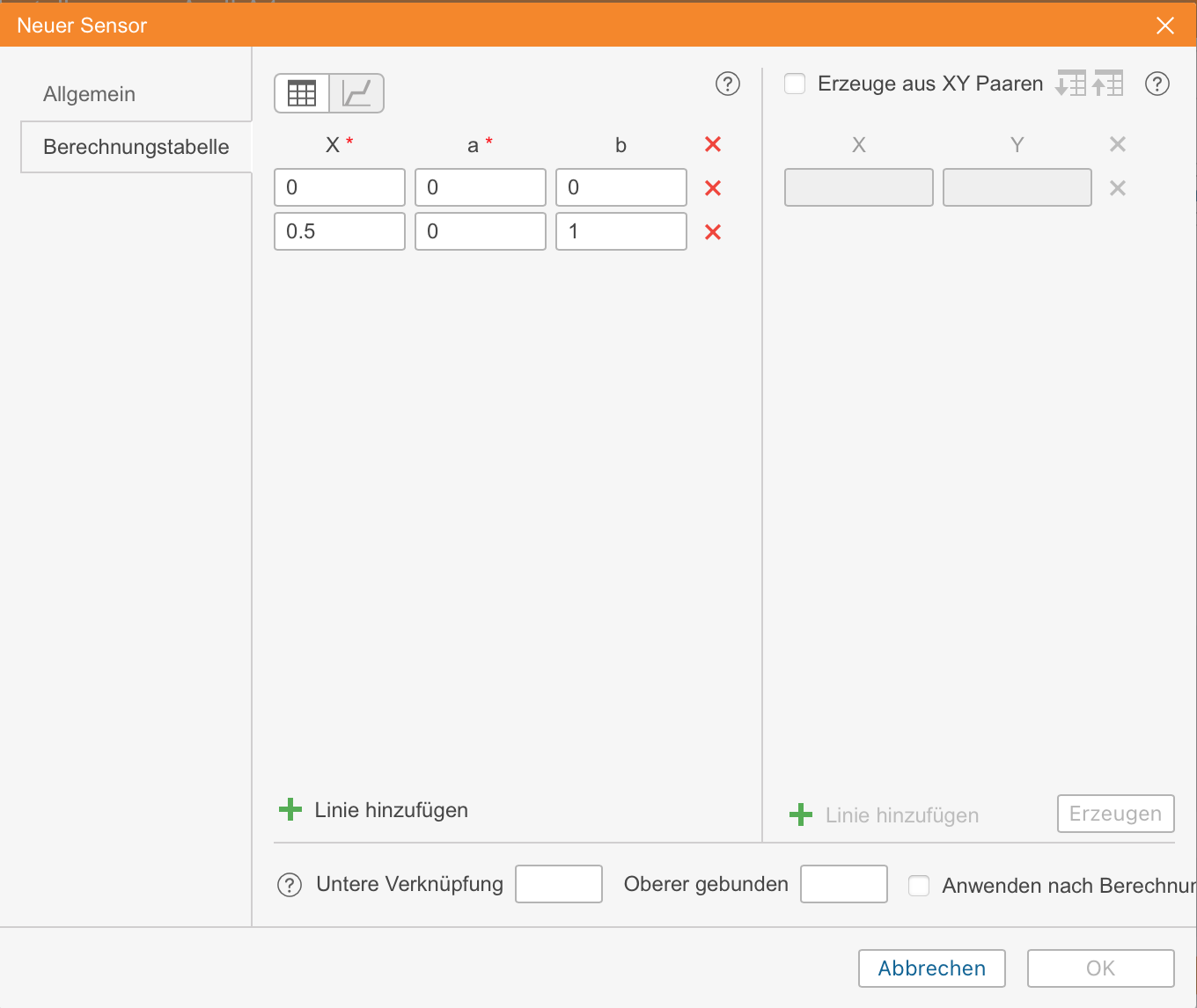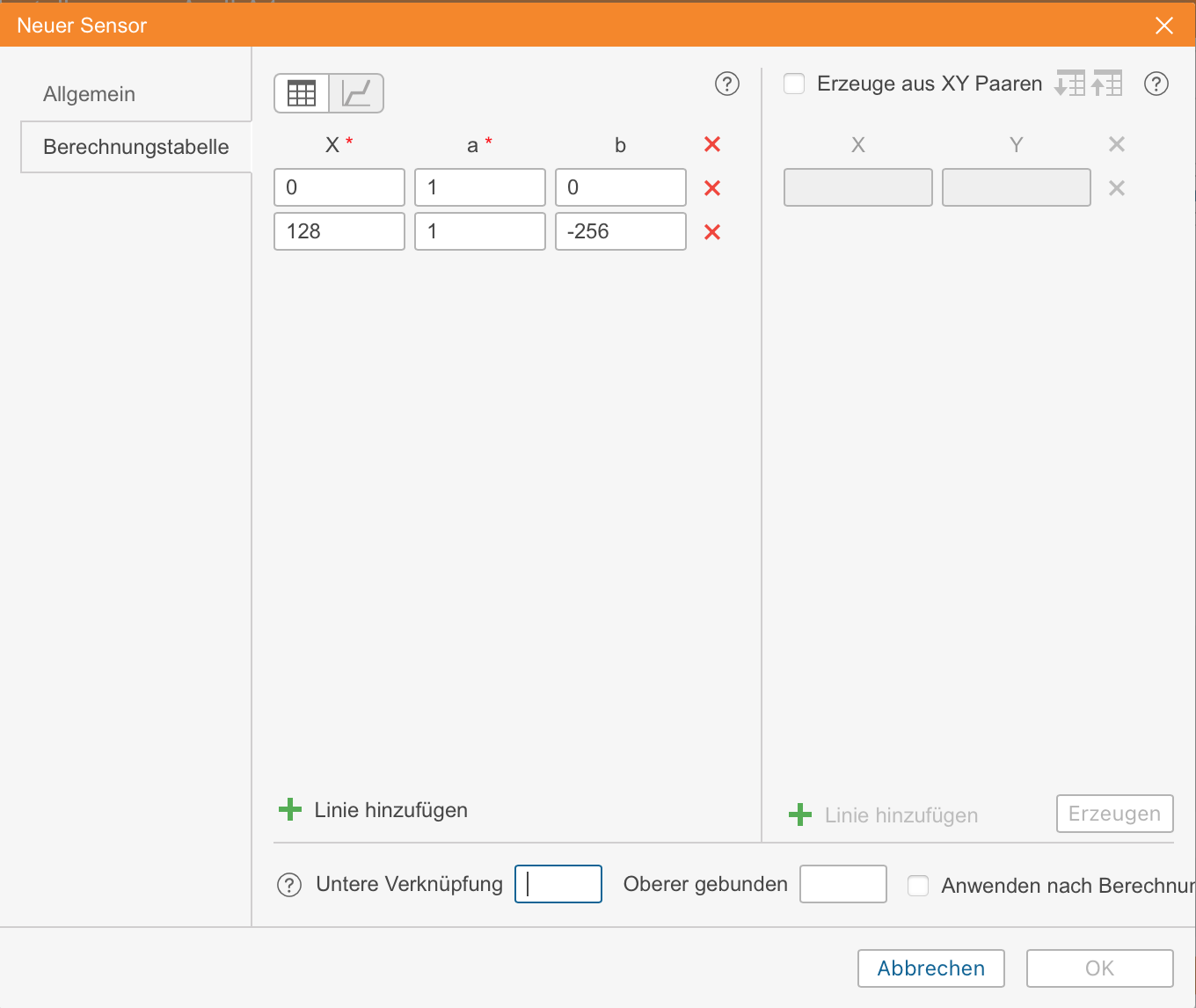 Die Berechnungstabelle ist nicht immer notwendig. Wenn der Sensor beispielsweise digital ist und nur 1 oder 0 sendet, die den Ein/Aus-Zuständen entsprechen, ist eine Berechnungstabelle nicht notwendig.