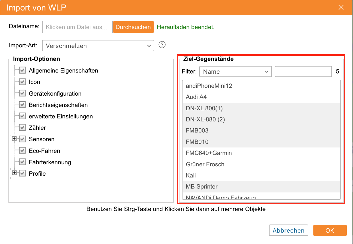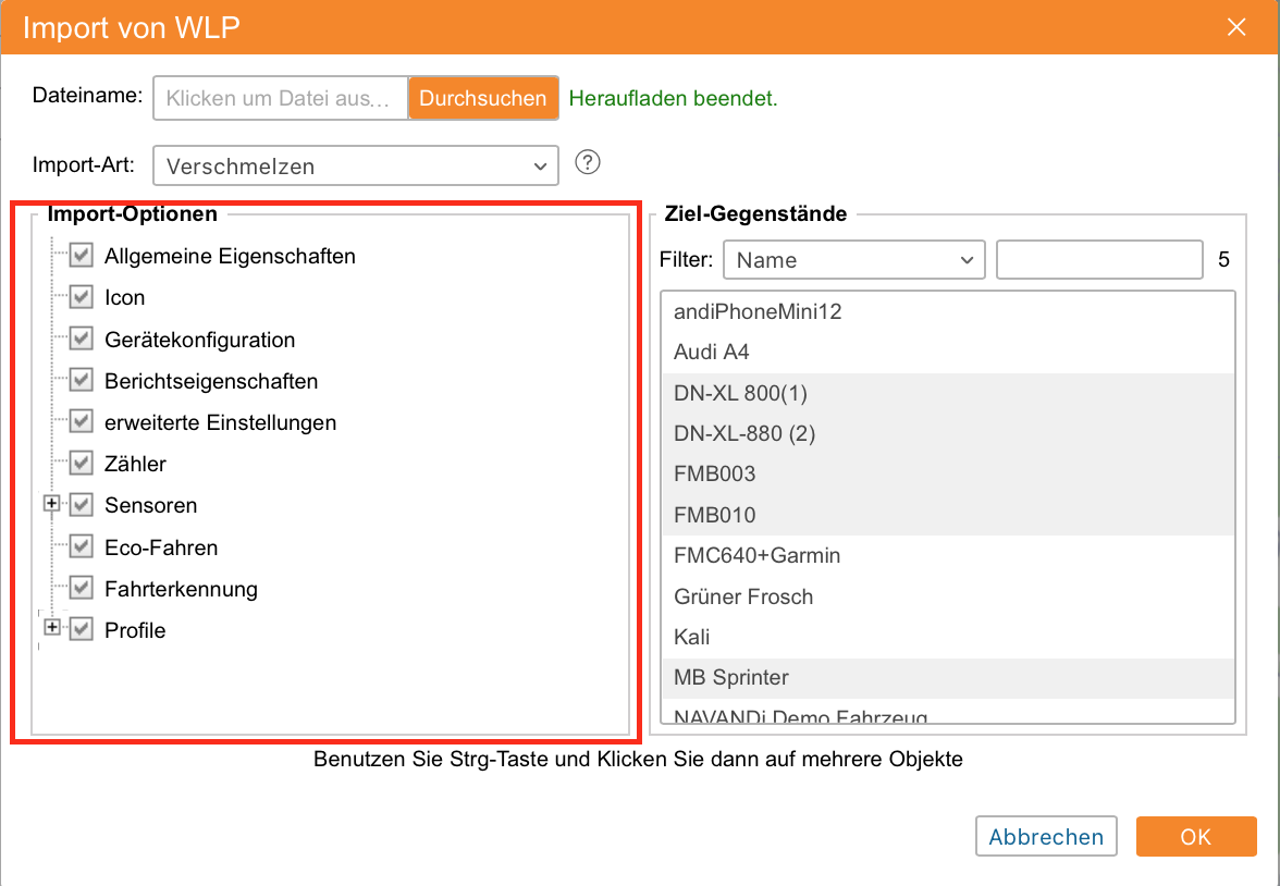 Auswahllisten können Kontrollkästchen enthalten, die angeben, ob das Element ausgewählt ist oder nicht. Die Strg + Klick-Kombination kann in solchen Listen verwendet werden, um alle Elemente auf einmal zu aktivieren/deaktivieren.