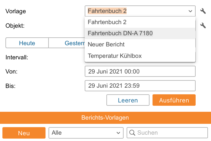 Dropdown-Listen sind in NAVANDi Telematik weit verbreitet. Sie bieten die Möglichkeit, eine große Anzahl von Einträgen zu verarbeiten. Dies kann beispielsweise eine Liste mit Objekten sein, die beim Generieren eines Berichts, bei der Recherche von Datensätzen in Nachrichten usw. verfügbar sind oder aber auch eine Liste von Tabellen zur Erstellung von Berichtsvorlagen.