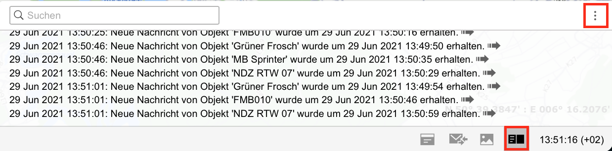 In der unteren rechten Ecke des Bildschirms befindet sich ein Protokoll, das durch Klicken auf das Symbol geöffnet wird